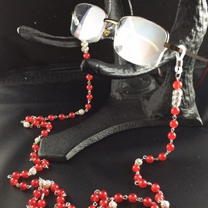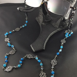 Save $10 when you buy this beautiful set of glass chain and rosary made with 6mm frosted Rose Quartz gem beads. The chain is finished cultured pearls, pink crystals and a pair of white elastic loops. The rosary is finished with metal beads, pink crystals and a 2"long metal cross covered with rhinestones. Ready to ship from Canada.