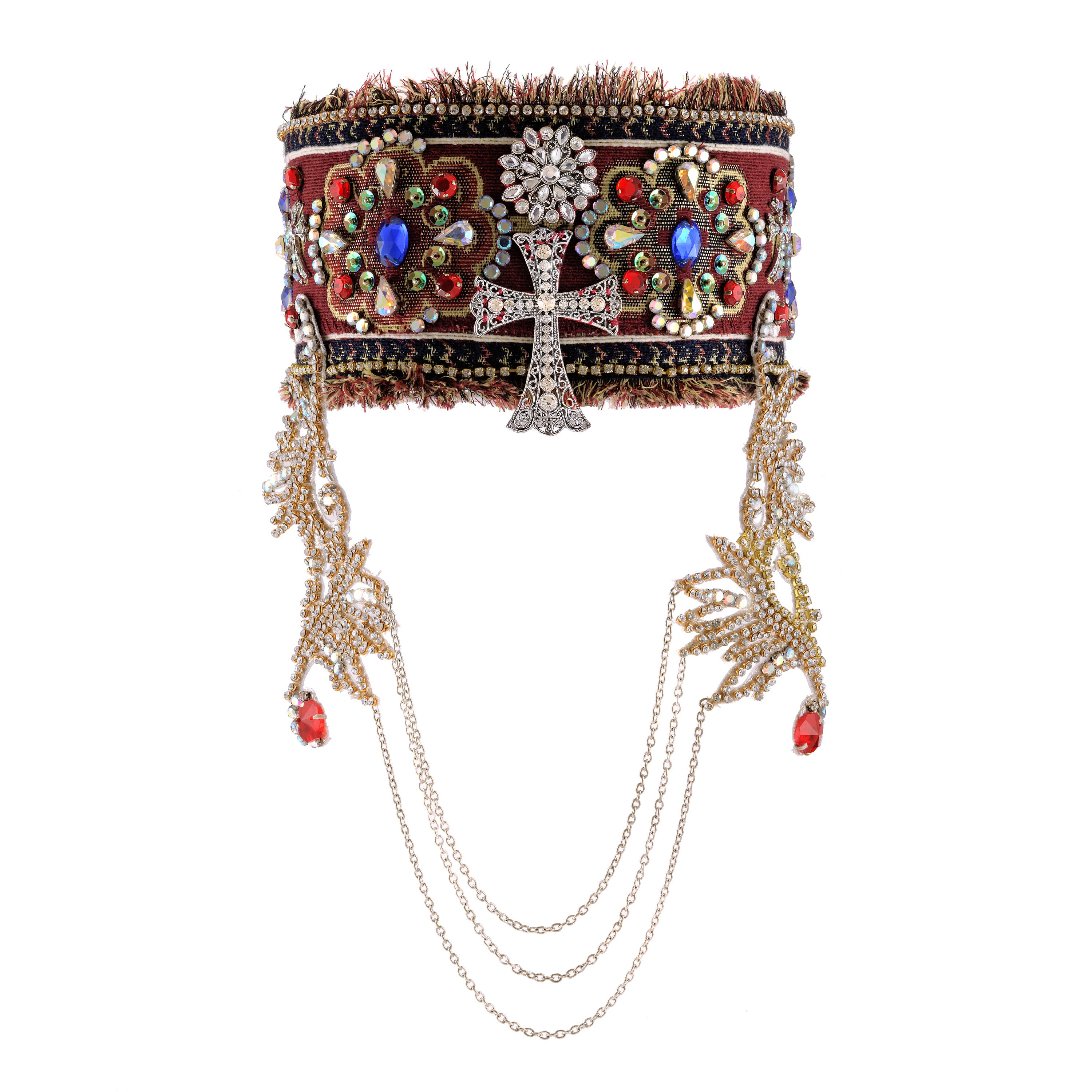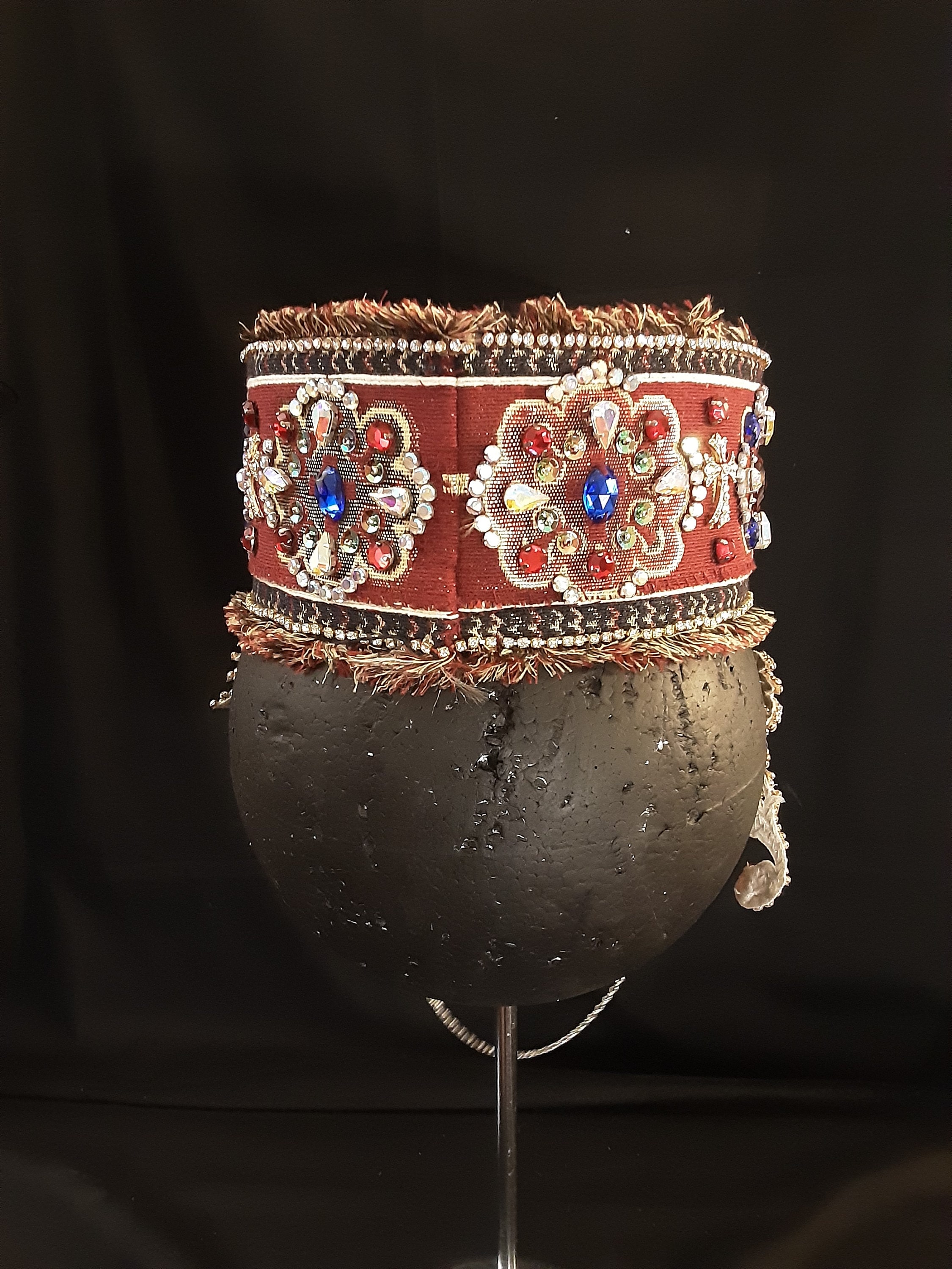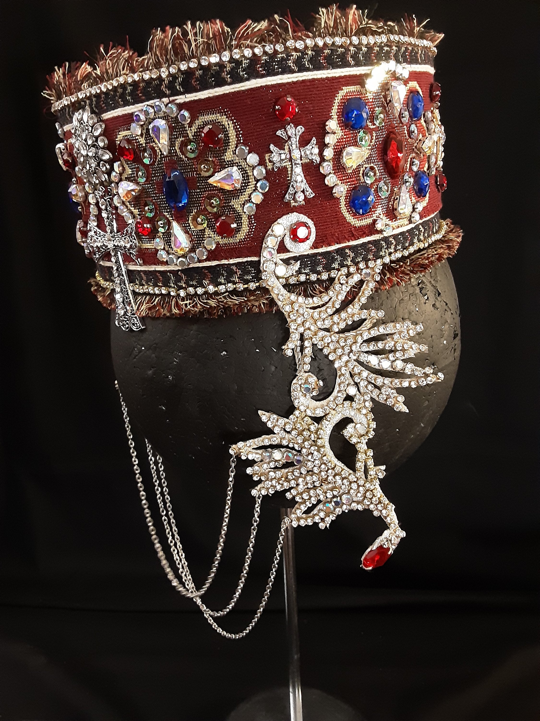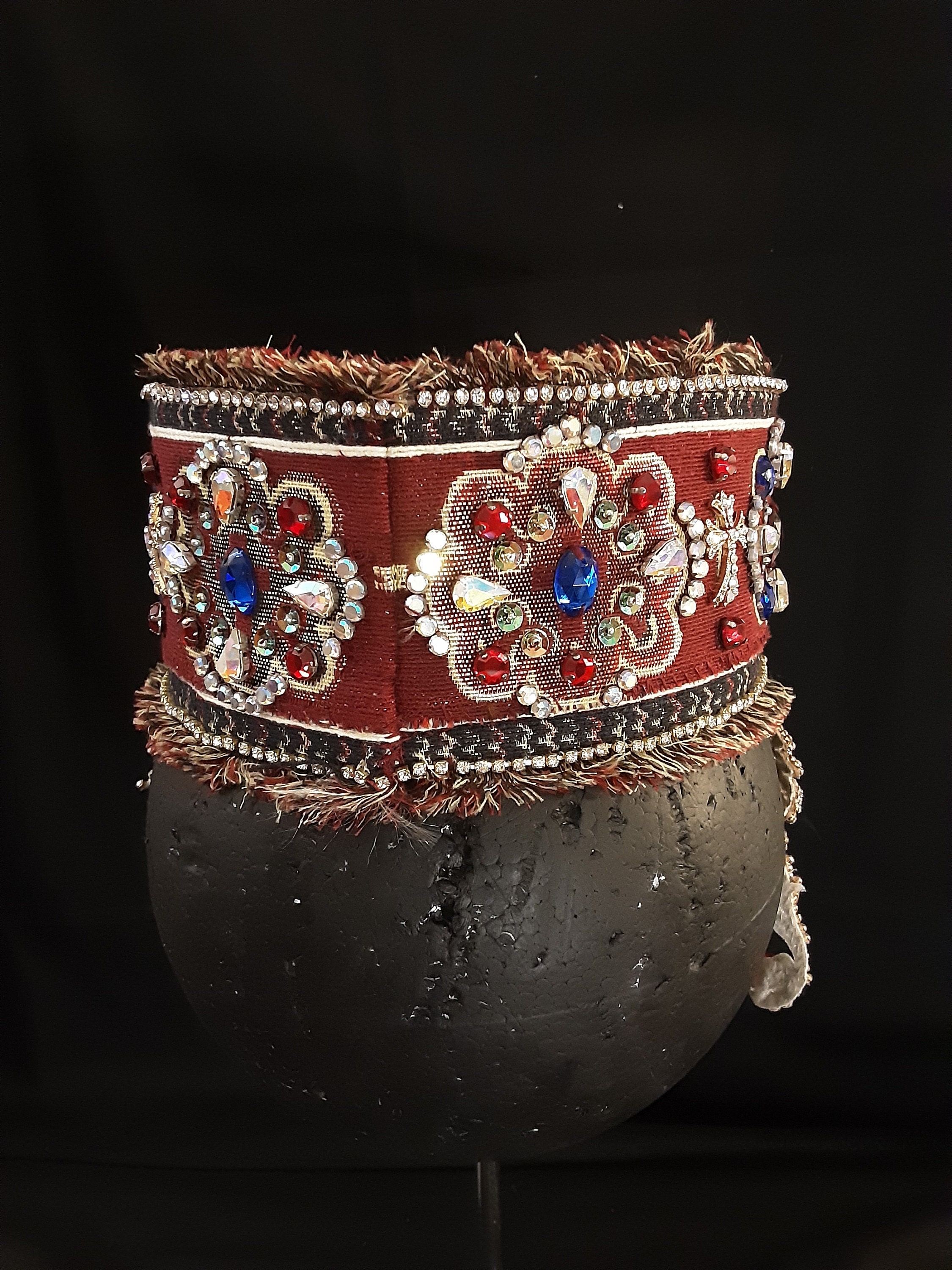 This ia a 100% handmade bridal headpiece covered with rhinestons , colorful stones, ornaments and chains symbolizing the beauty of the Armenian character. Fits women's M/Lhead size. It is a unique headpiece ready to ship.