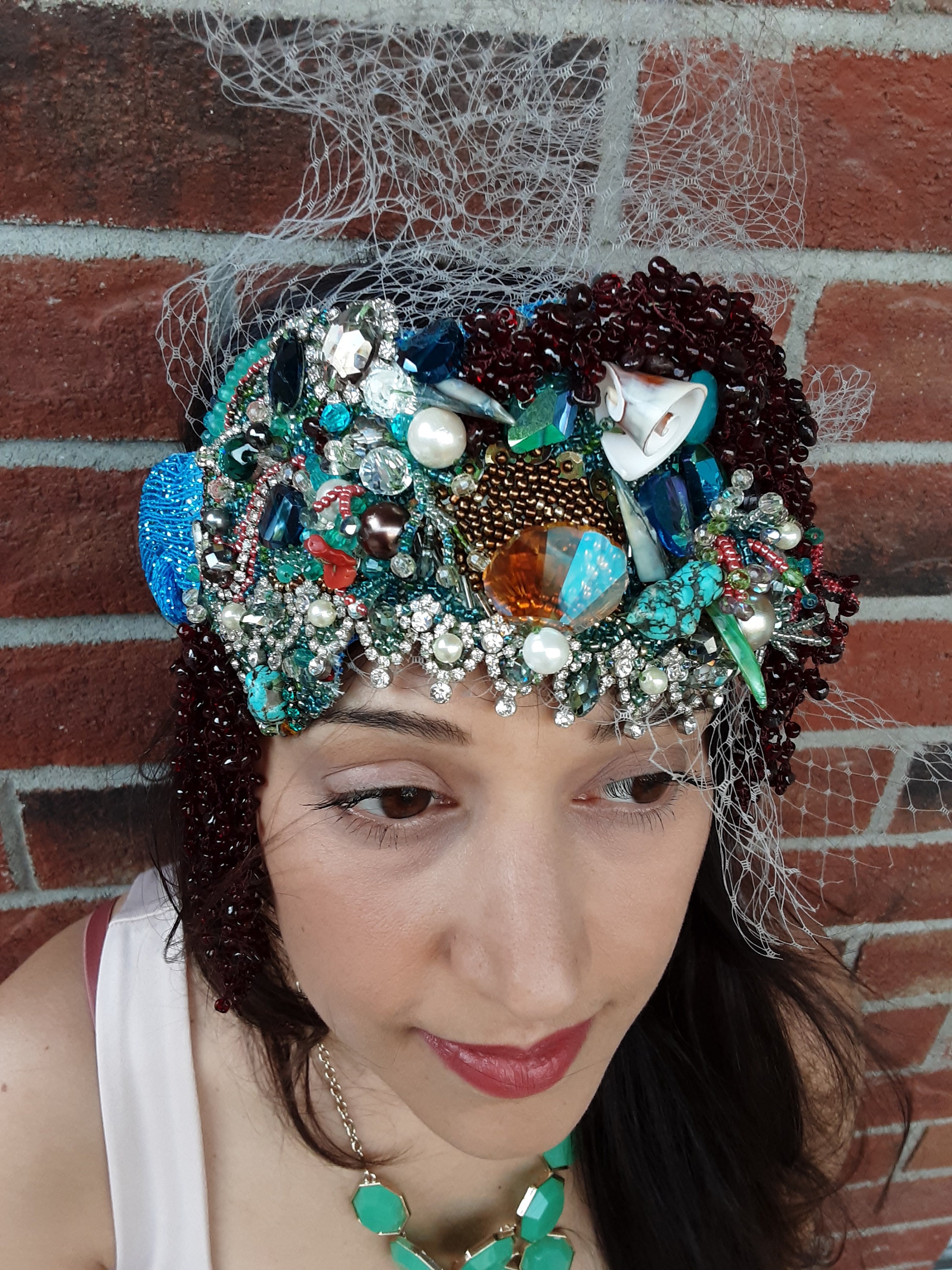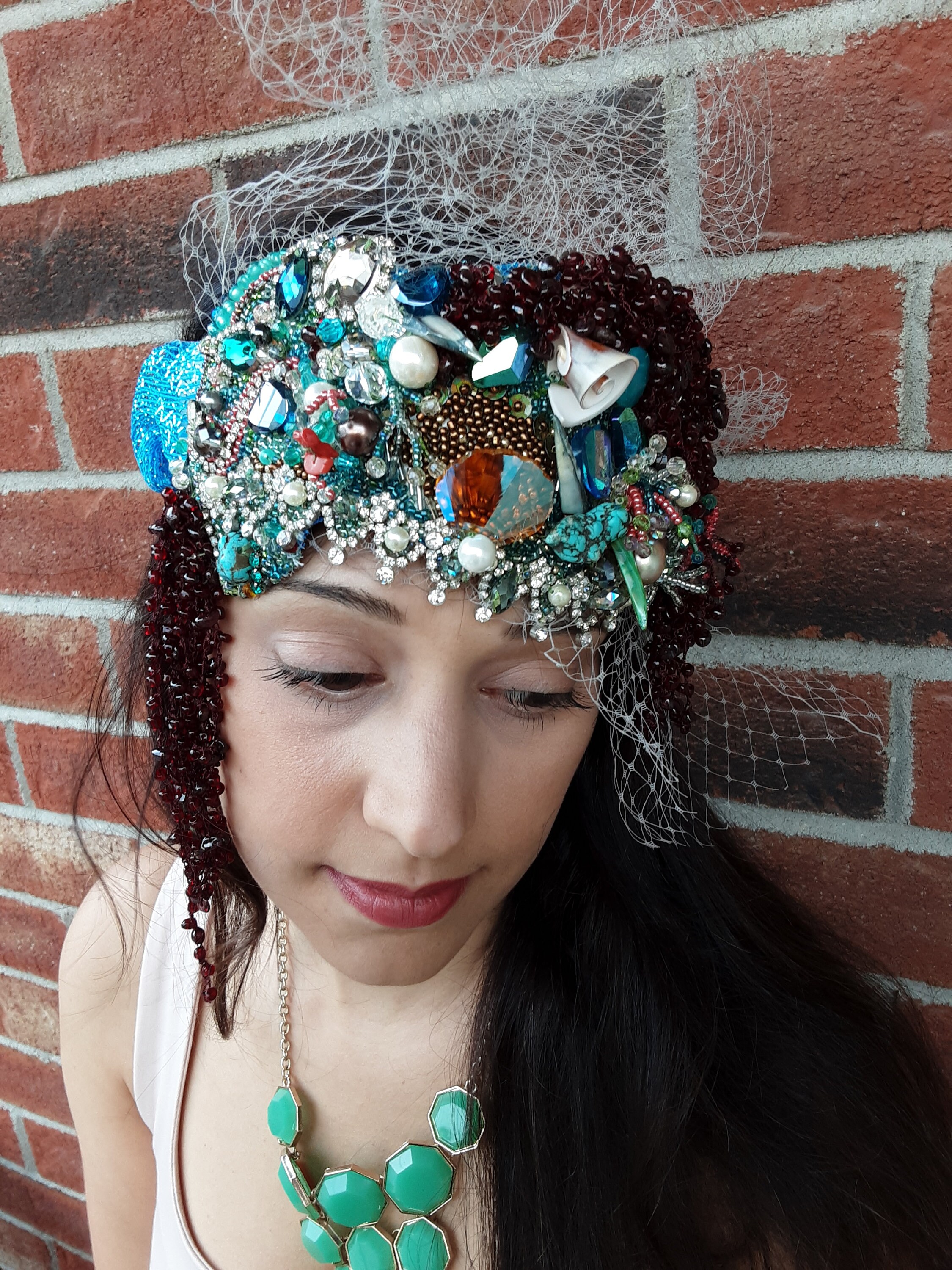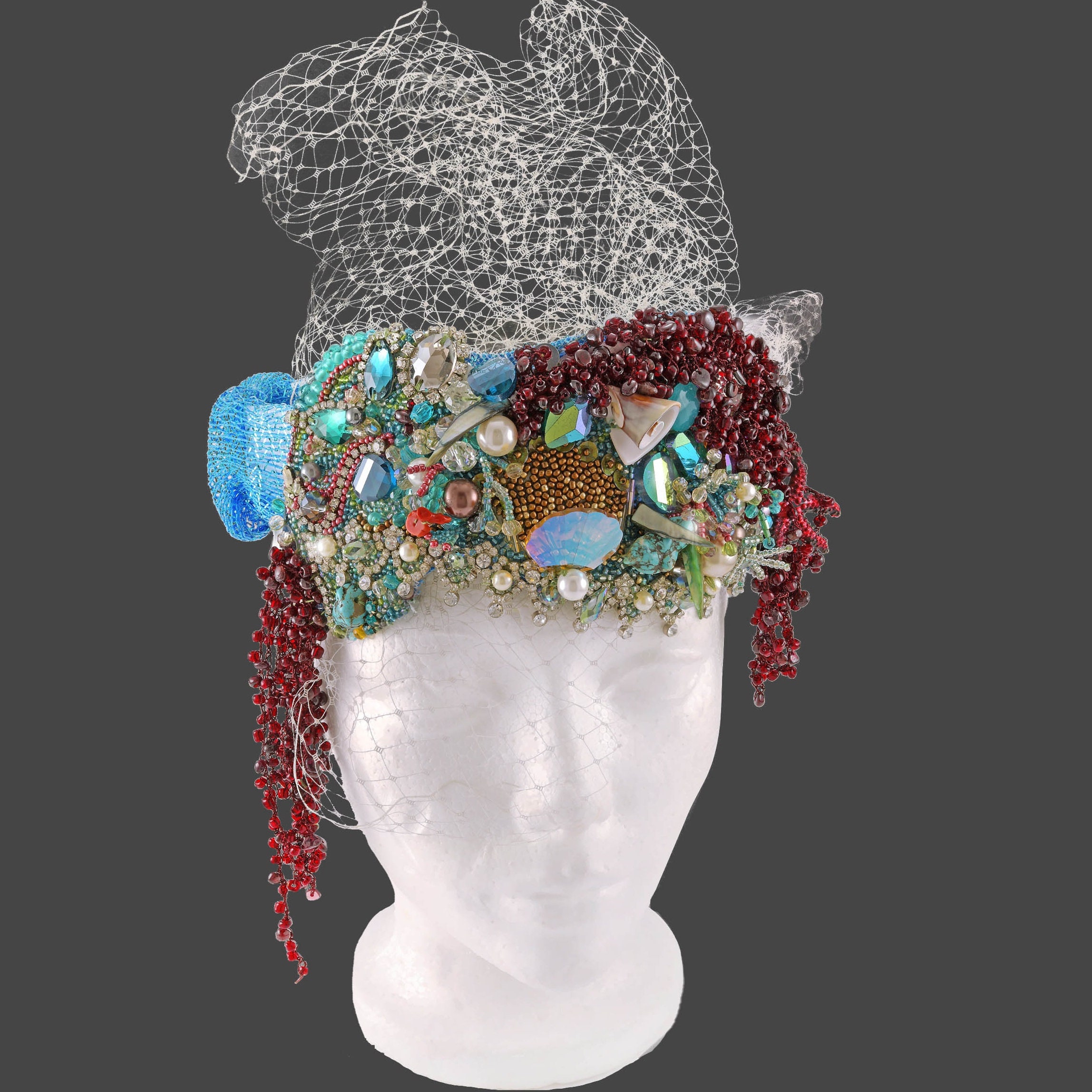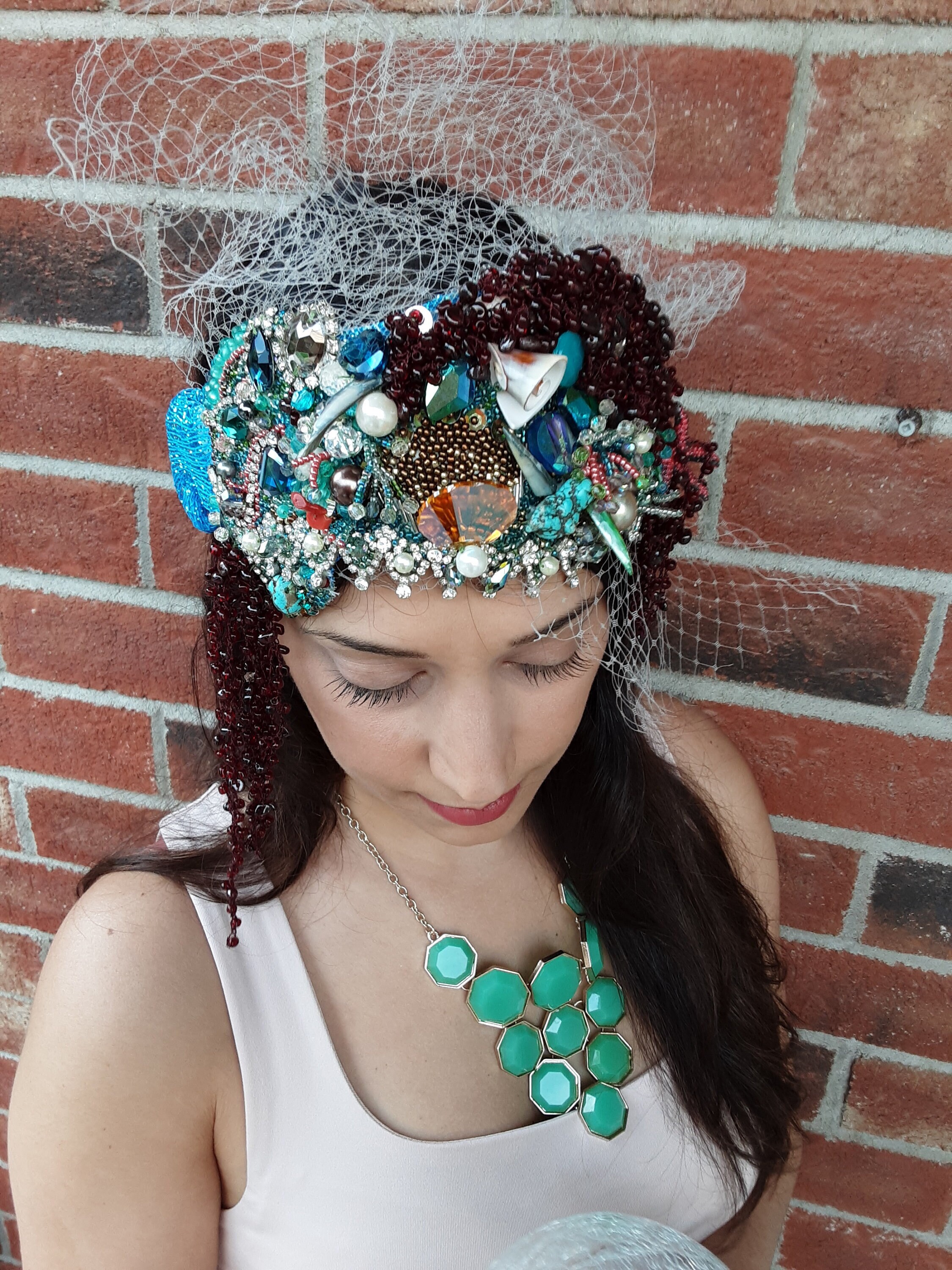 Handbeaded Ocean Headdress: Seashells, Crystals & Rhinestones
