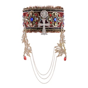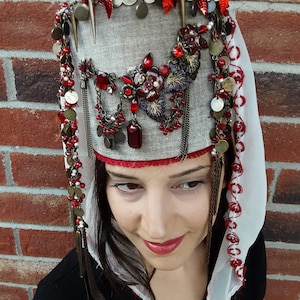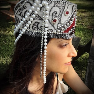 This is an ethnic traditional flower girl costume version, handmade with a purple fabric, hand sewn with tiny fabric flowers of navy blue,pink and rose colors. Tiny beads are braided and attached to the edges. Apron is also made with velvet and decorated with a traditional patterned fabric and beads. Fits size 5 to 14