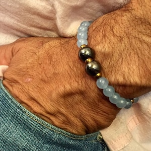 This bracelet for men is made with beautiful, high grade, silky smooth polished, Tiger Eye gem beads, holding a metal, gold colour lion head charm and metal beads, set on an elastic wire. Comfortable and light to wear. For custom sizes please contact.